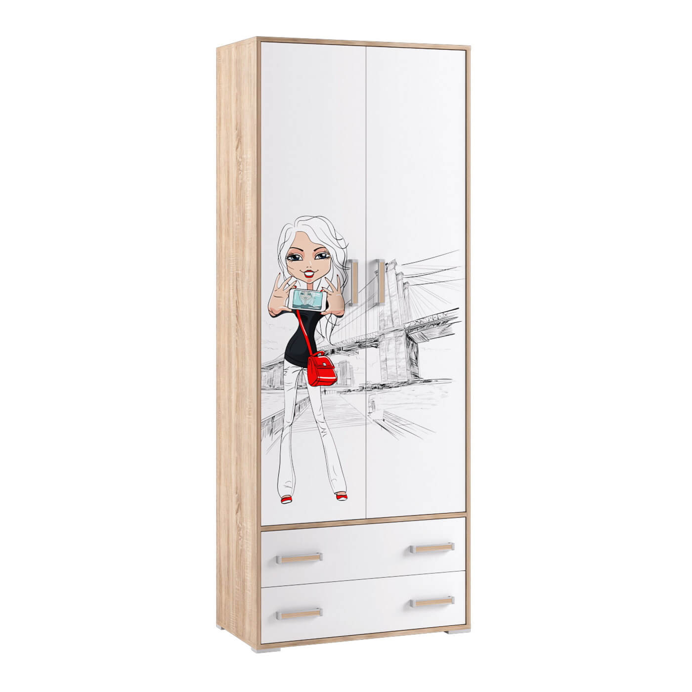 Спальня Бланка. Шкаф 2-хств. дуб сонома/белый с фотопечатью