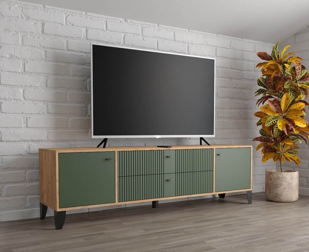 Тумба ТВ Парус-10 дуб крафт золотой/карбон дарк грин