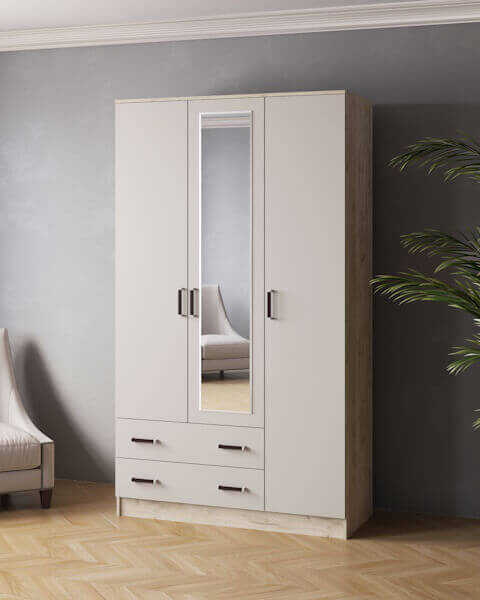 Шкаф комбинированный Лагуна с зеркалом дуб крафт серый/кашемир